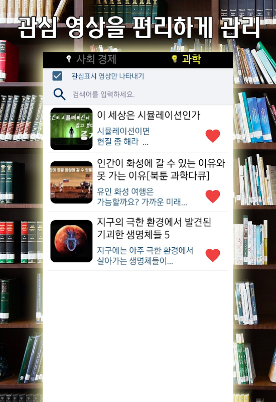 빠르고 쉽게 접하도록 화면이 체계적으로 구성됐고 각 분야에 대한 관심 영상을 편집하고 이를 효율적으로 관리하도록 돼있습니다.