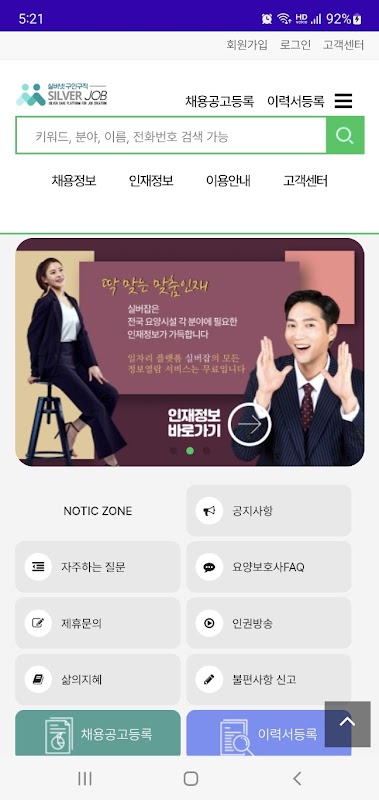 요양산업의 발달로 인한 인력수급의 불균형을 해소하기 위해 실버넷 구인구직 플랫폼이 탄생되었습니다.