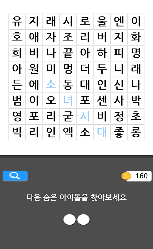 여러개의 글자 속에서 아이돌과 관련된 숨은 단어를 찾아보세요