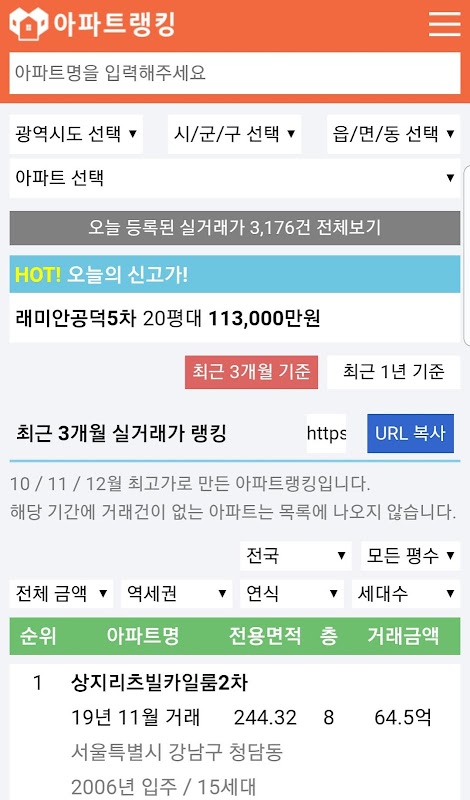 아파트랭킹은 국토부 실거래가 사이트를 보면서 불편했던 점 / 궁금했던 점을 해결하기 위해 개인이 만든 앱입니다.
