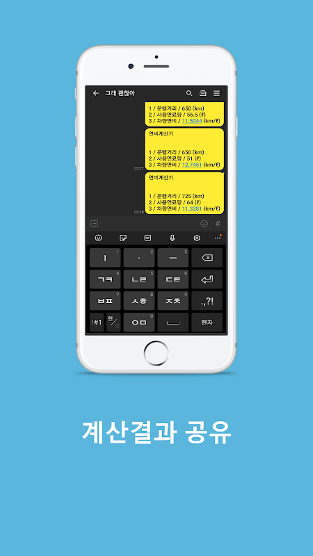 자동차 연비(km/ℓ)를 계산해요. 연비는 리터(ℓ)당 운행할 수 있는 거리(km) 입니다.