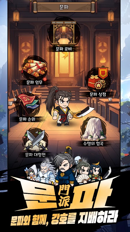 열혈강호 원작의 주인공들을 캐주얼한 SD 캐릭터로 재해석! 원작의 스킬과 전략적 요소를 모두 갖춘 방치형 RPG!