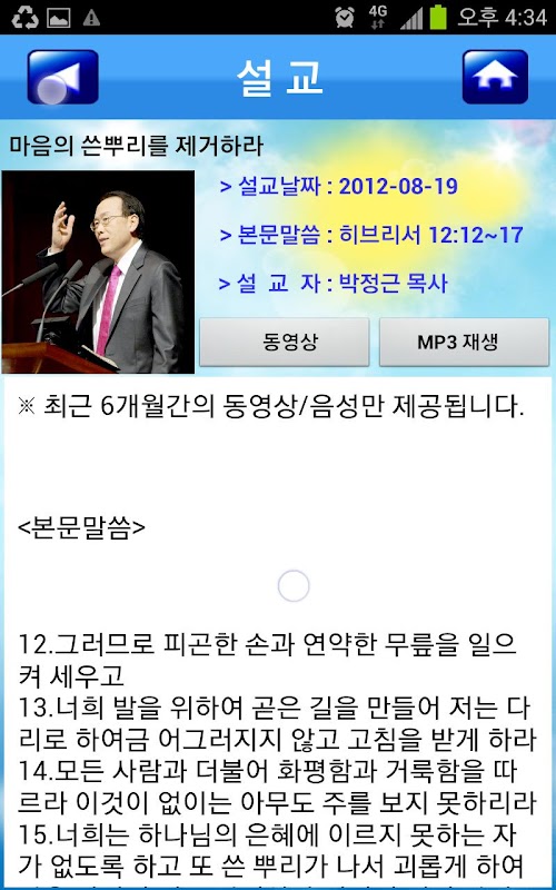 ㅇ 메뉴 : 목사님 설교(동영상,MP3), QT, 목장, 게시판 등으로 구성 되어 있습니다.