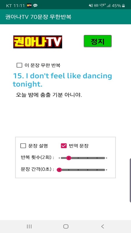 7. 문장 설명 제외하고 영어 문장만도 들을 수 있다.
