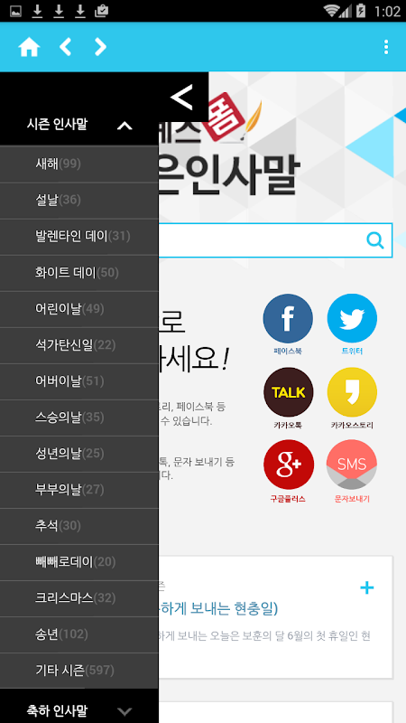 예스폼 좋은 인사말은 페이스북, 트위터, 카카오톡, 카카오스토리, 구글플러스, 문자보내기 등 모든 SNS으로 쉽고 간편하게 전달하실 수 있습니다.