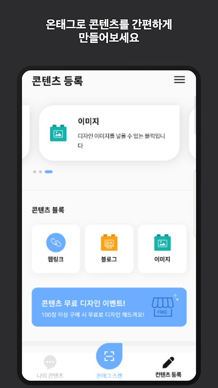 다양한 콘텐츠를 제작하여 온태그에 연결해보세요.