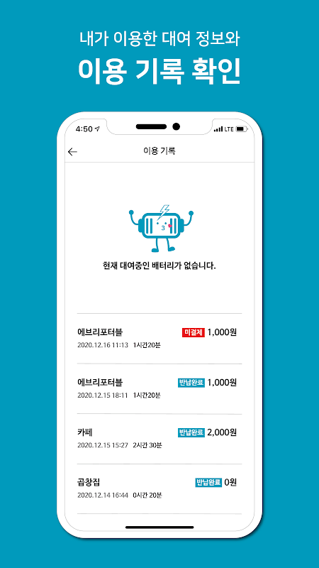 QR코드로 쉽게 대여하고 간편하게 반납하는 보조배터리 대여 서비스.