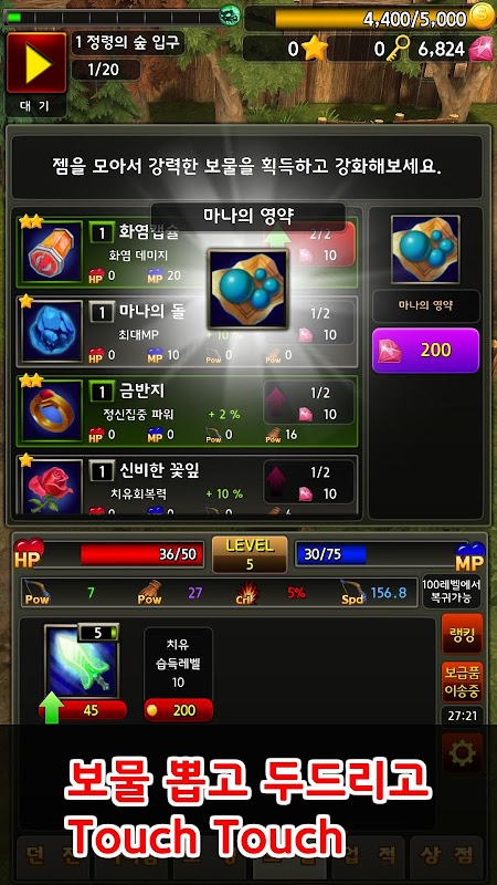 젬을 모아서 강력한 보물을 획득할 수 있습니다.