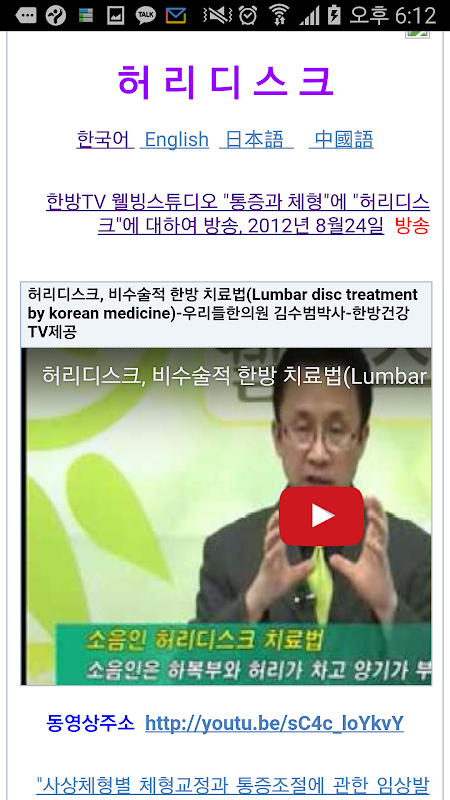 우리들한의원, 우리한의원의 앱은 김수범한의학박사의 체형교정 디스크 사상체질진단감별 다이어트 통증 피부성형 건강법 약선음식 등에 관해 알려줍니다.