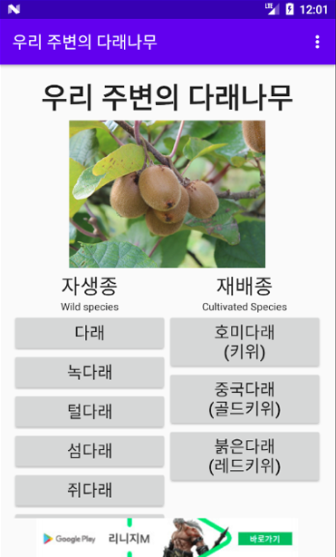 우리 주변의 다래나무의 종류에 대해 알아보는 앱입니다.