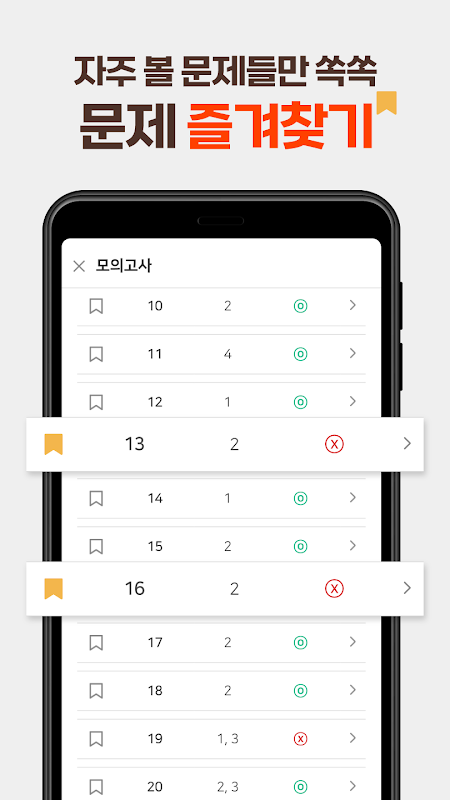 실제 시험과 동일한 구성으로 된 모의고사 문제 풀고 틀린 문제를 바로 오답 노트에서 확인할 수 있습니다.