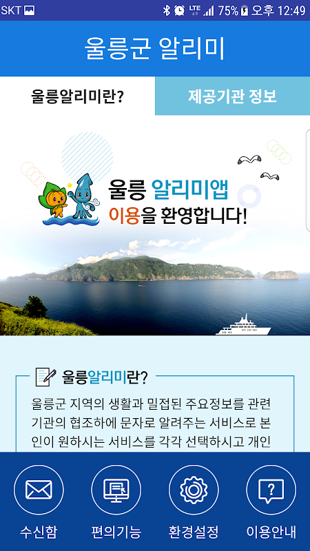 울릉군 지역의 생활과 밀접된 주요정보를 실시간으로 알려주는 서비스