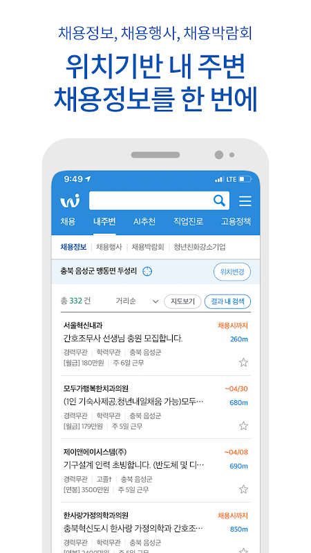 - 스마트폰 GPS를 활용한 내 주변 일자리 정보, 채용행사, 채용박람회 정보