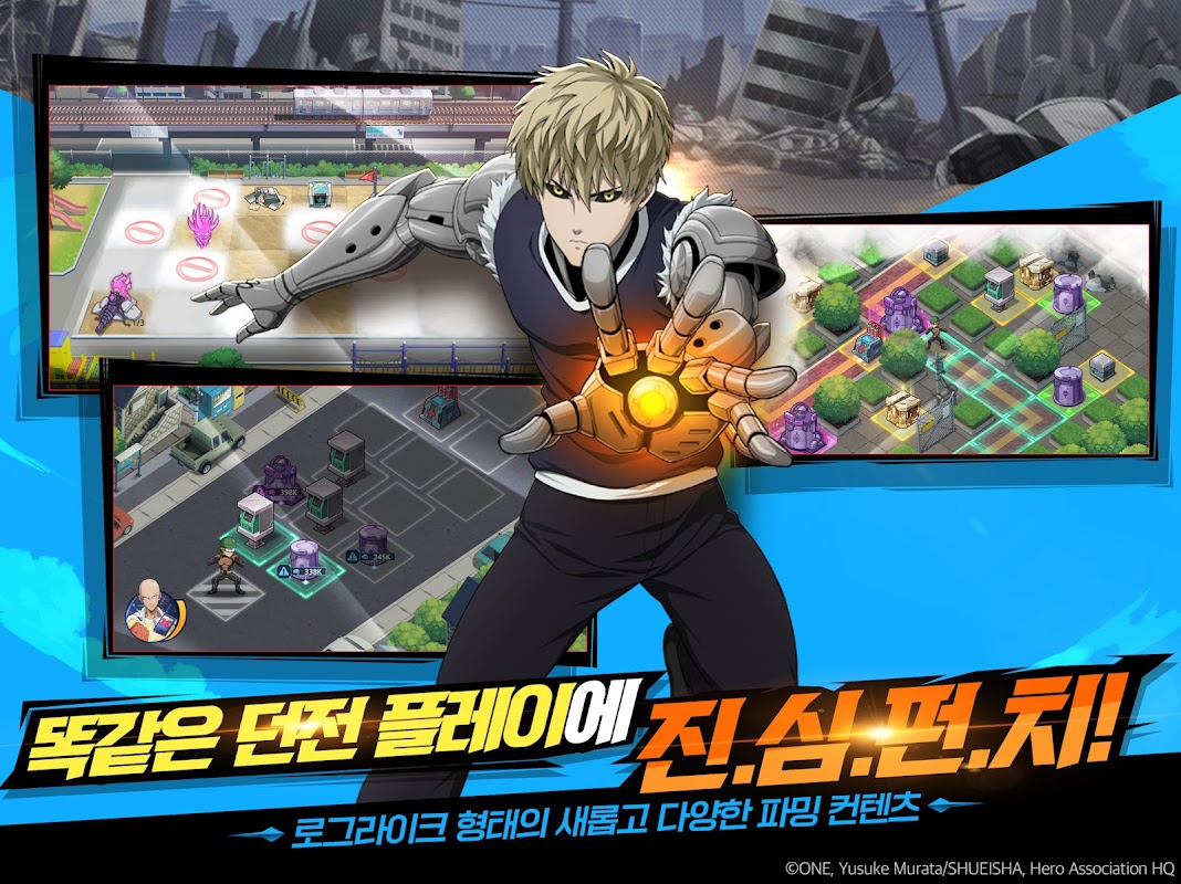 인기 애니메이션 “원펀맨” IP를 활용한 RPG게임 “원펀맨:영웅의길”은 [ONE PUNCH MAN]제작 위원회가 정식으로 허가하였으며, 집영사를 포함하여 [ONE PUNCH MAN]제작 위원회가 검수하고 있습니다.