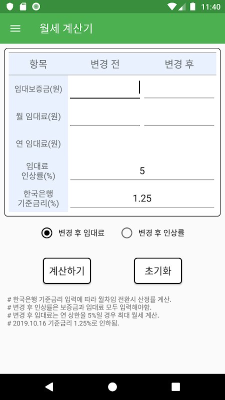 월세 계산기 (렌트홈 계산기)의 오래된 버전