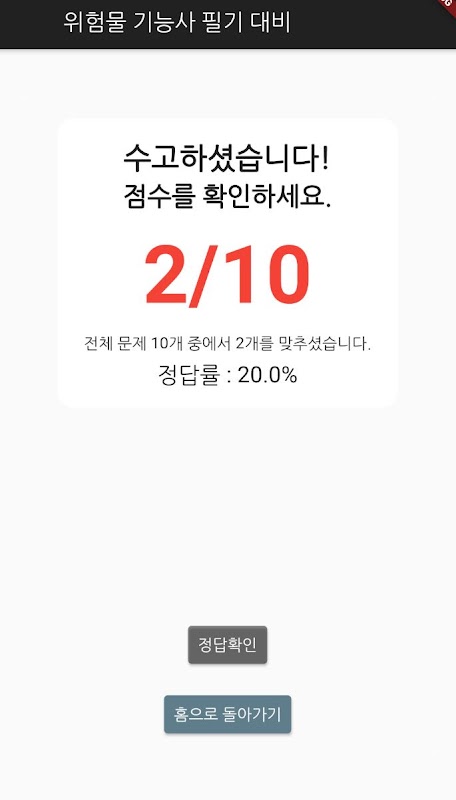 위험물 기능사 기출문제를 랜덤으로 풀어볼 수 있는 어플입니다.