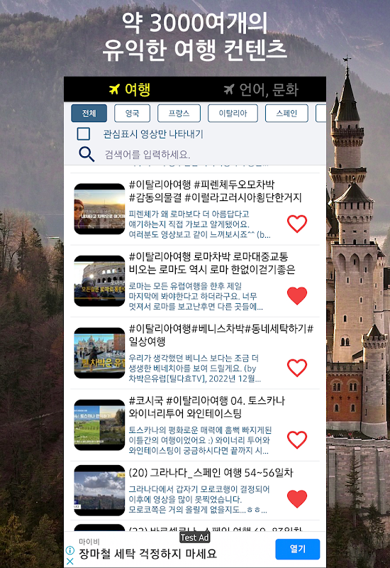 영국, 프랑스, 독일 등 유럽 각 지역의 여행 영상과 그림, 문화역사까지 탐방할 수 있는 영상이 약 3000개에 이 닙니다. 지금 바로 확인하세요.