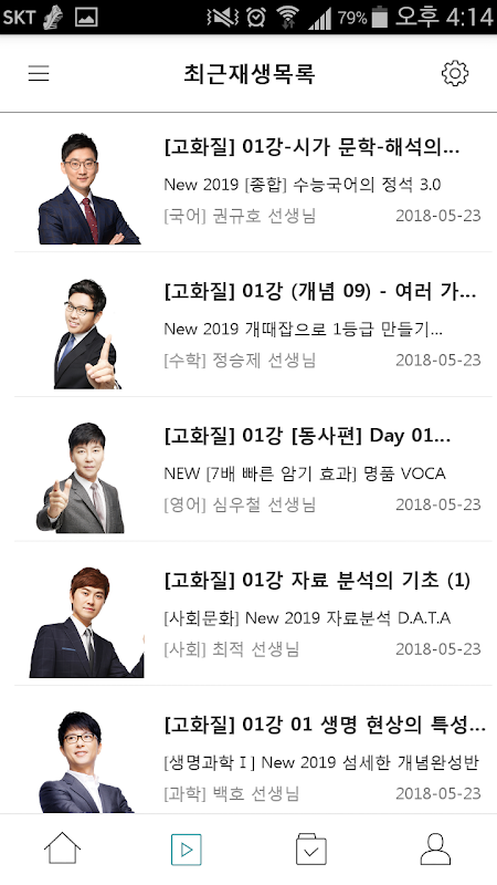 고화질 영상을 배속, 구간 반복, 북마크 등의 기능을 통해모바일 환경에서도 쉽고 편하게 공부할 수 있는이투스 수강앱!