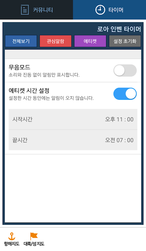 4. 알람 하단에는 '항해지도'와 '대륙/섬지도'도 바로 확인이 가능합니다!