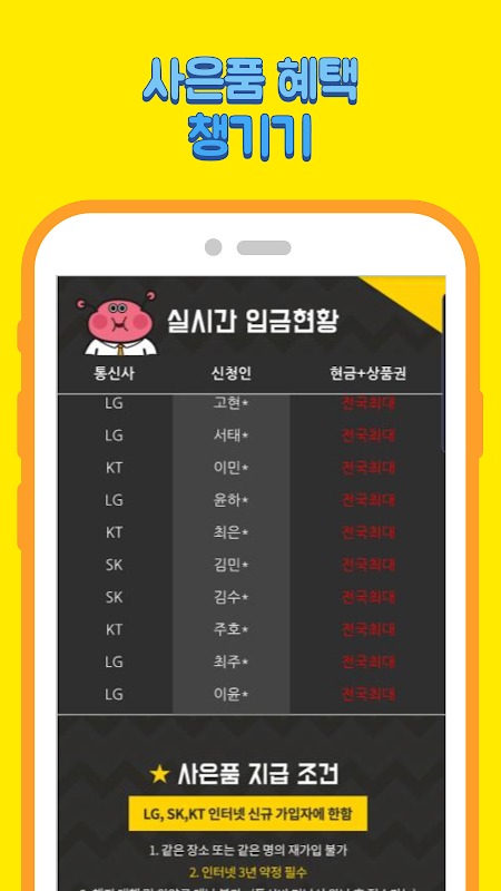 인터넷 가입 시 현금 사은품도 준비가 되어있습니다.
