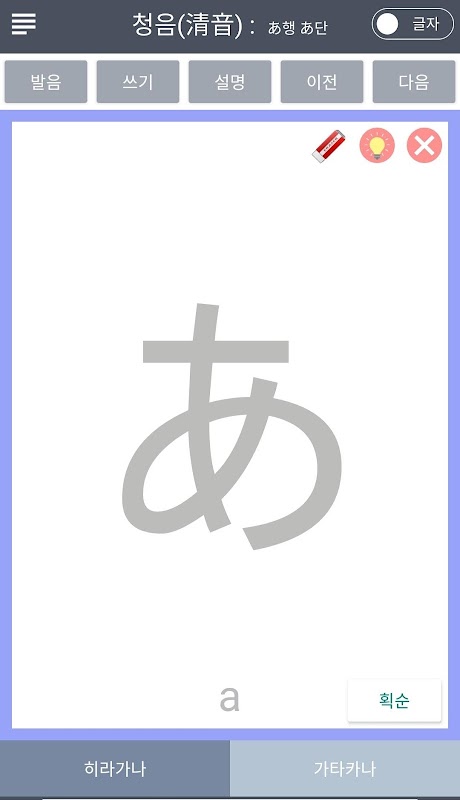 * 히라가나, 가타카나를 학습할 수 있습니다.