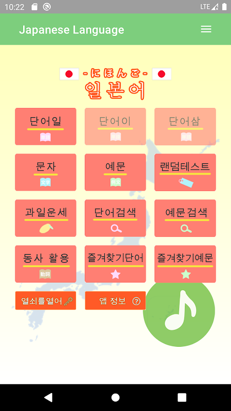 초급자가 일본어 기초 어휘, 예문,동사 활용,발음, 문자 등을 배울 수있는 앱입니다.원어민 음성 포함. 재생 속도 변경 가능.