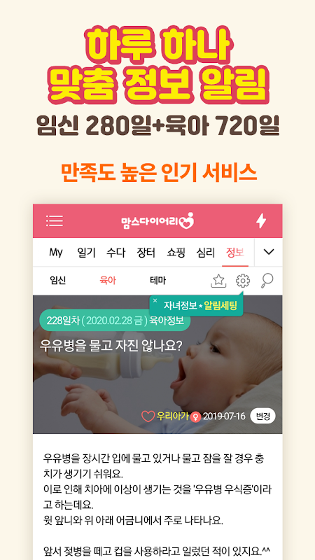 - 맞춤 정보 알림 : 하루 하나, 임신 280일 + 육아 780일