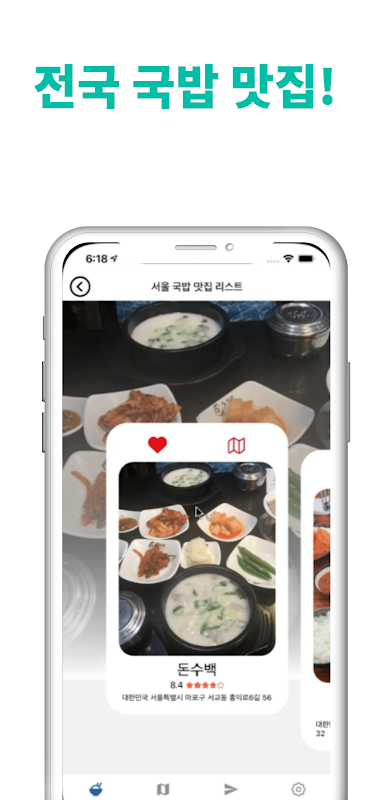 "전국국밥지도" 는 전국의 국밥 맛집을 상위 몇 개로 보여주는 어플입니다.