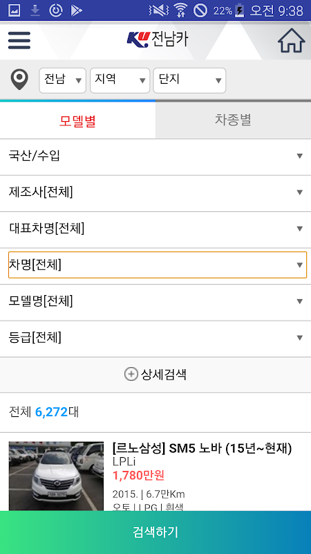 전라남도지역 등록업체의 모든 중고차가 모였다
