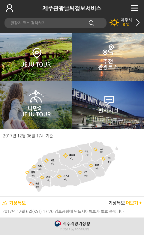 1. 제주관광날씨정보서비스 웹서비스와 연동됩니다.