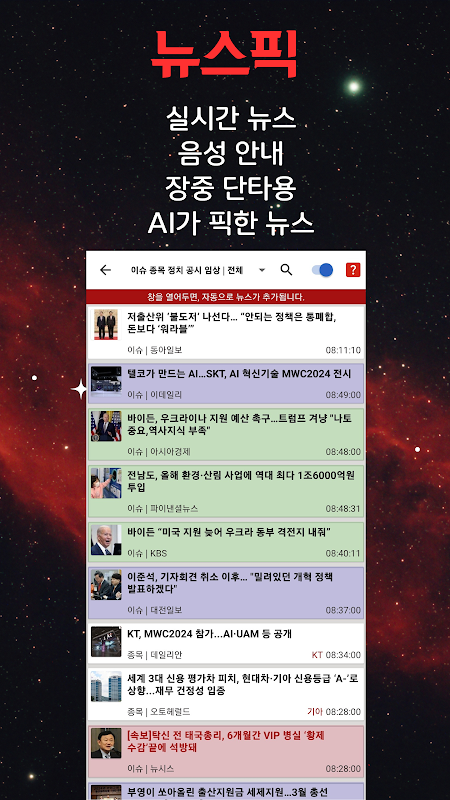 주식과 관련된 뉴스만 뽑아내고 여기에 테마와 종목을 연동해주는 실시간 주식 뉴스 서비스
