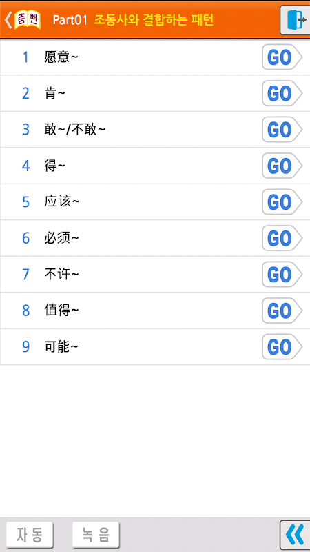 1단계 : 우리말과 중국어로 표현된 패턴의 반복 학습을 통해 패턴과 친숙하게 됩니다.