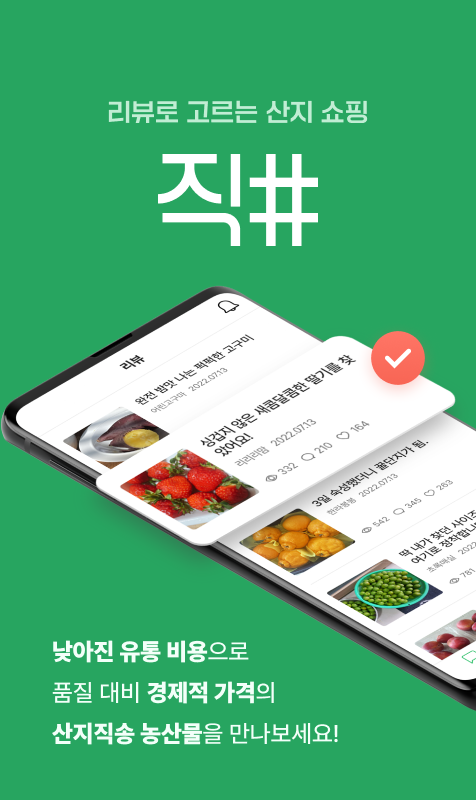 다양한 취향의 농산물과 구매자들의 솔직한 리뷰가 직샵에 모여있습니다.