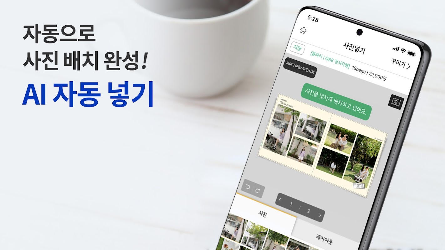 ‘AI 사진 배치’로 빠르게 포토북을 만들 수 있어요.