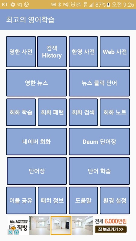 영어 학습에 필요한 기능을(영어사전, 영어뉴스, 영어소설, 영어회화, 영어패턴, 영어숙어, 단어장, 단어 학습) 한곳에 모았습니다.