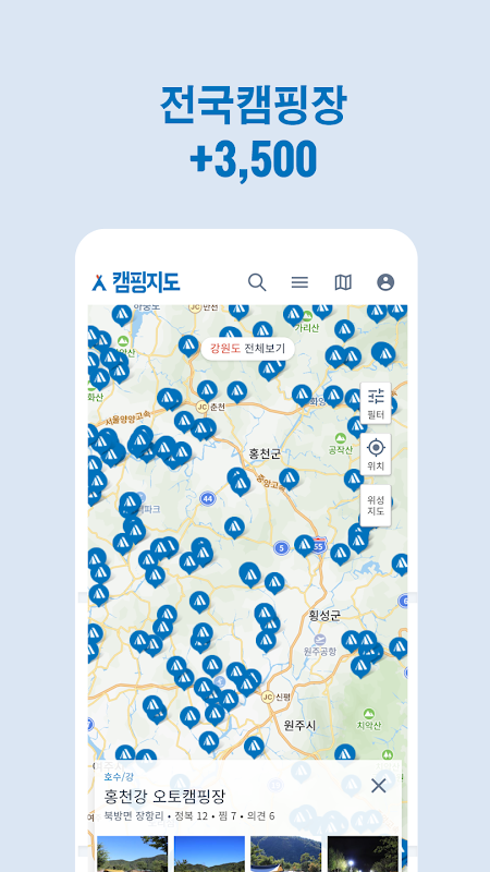 - 대한민국 최대 캠핑장 정보 수록(3500여개)
