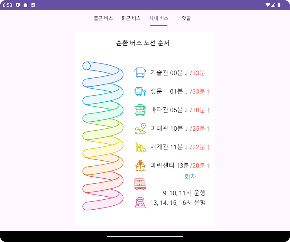 - 버스 위치 및 시간 매일 업데이트 됩니다.