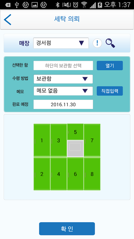 보관함 현황을 통해 해당 세탁소의 비어 있는 세탁보관함을