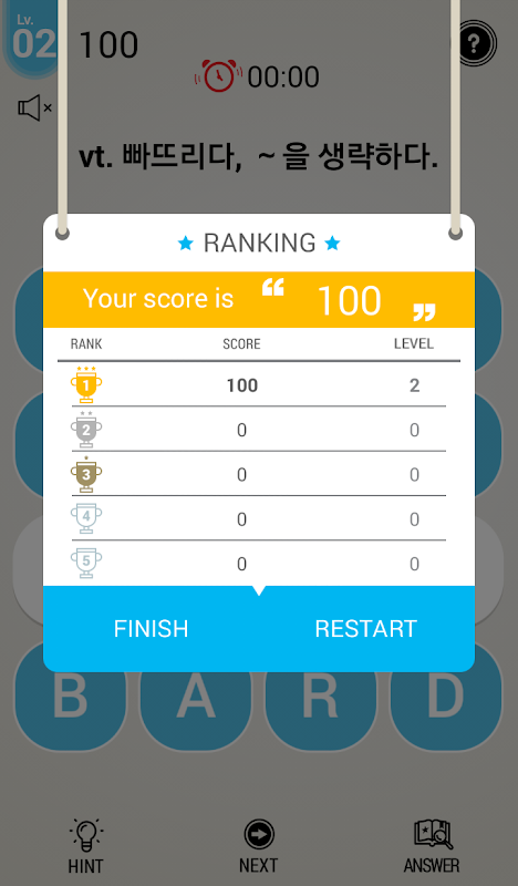 레벨이 올라 갈 수록 단어의 수준도 높아 집니다. (초등 ~ 대학생 수준)