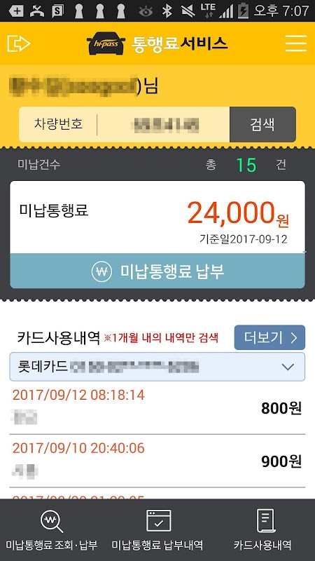 - 미납통행료 납부 내역 조회, 영수증 출력이 가능합니다.