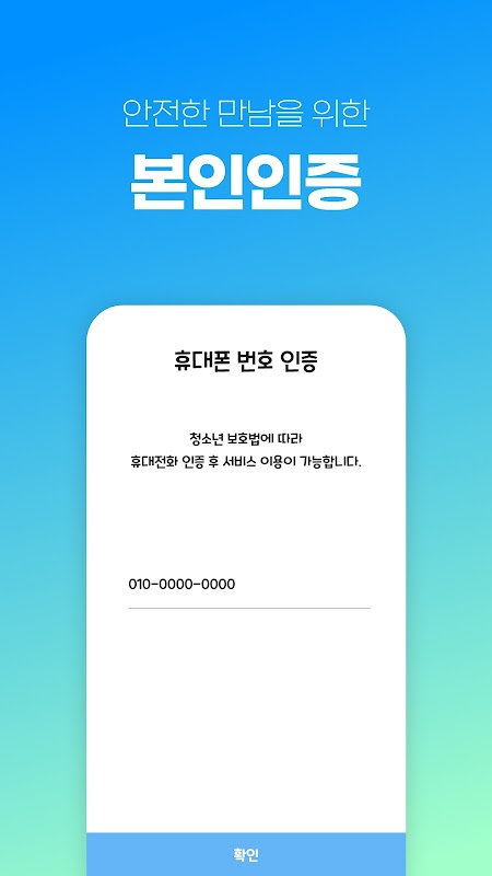 본 앱은 성매매를 목적으로 하지 않으며, 청소년 보호법을 준수하고 있습니다. 이를 위반할 시 형사처벌의 대상이 될 수도 있습니다.