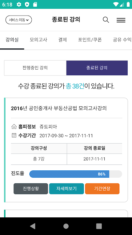 강의 수강에 따른 진도율도 관리할 수 있습니다.