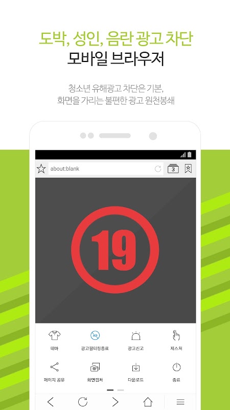 국내 특화! 광고 차단 브라우저!동영상 5초, 15초 광고 차단!!인기사이트, 뉴스사이트 광고 선택 차단!웹서핑 속도 증가! 데이터 절약!