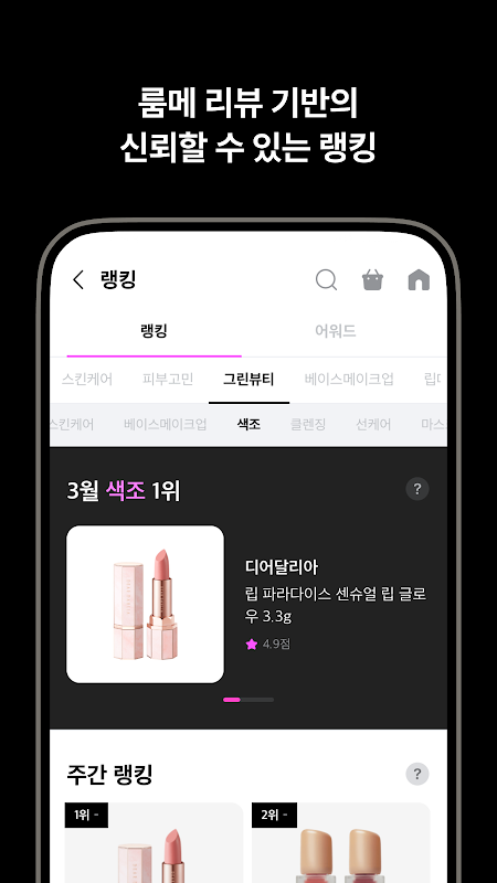 50만 유저들이 작성한 퀄리티 좋은 리뷰를 개인별 뷰티프로필에 맞춰 제공합니다