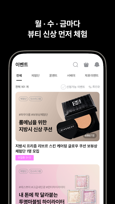 인기 뷰티 브랜드 신제품을 누구보다 빠르게 사용하고 찐리뷰를 남겨보세요!