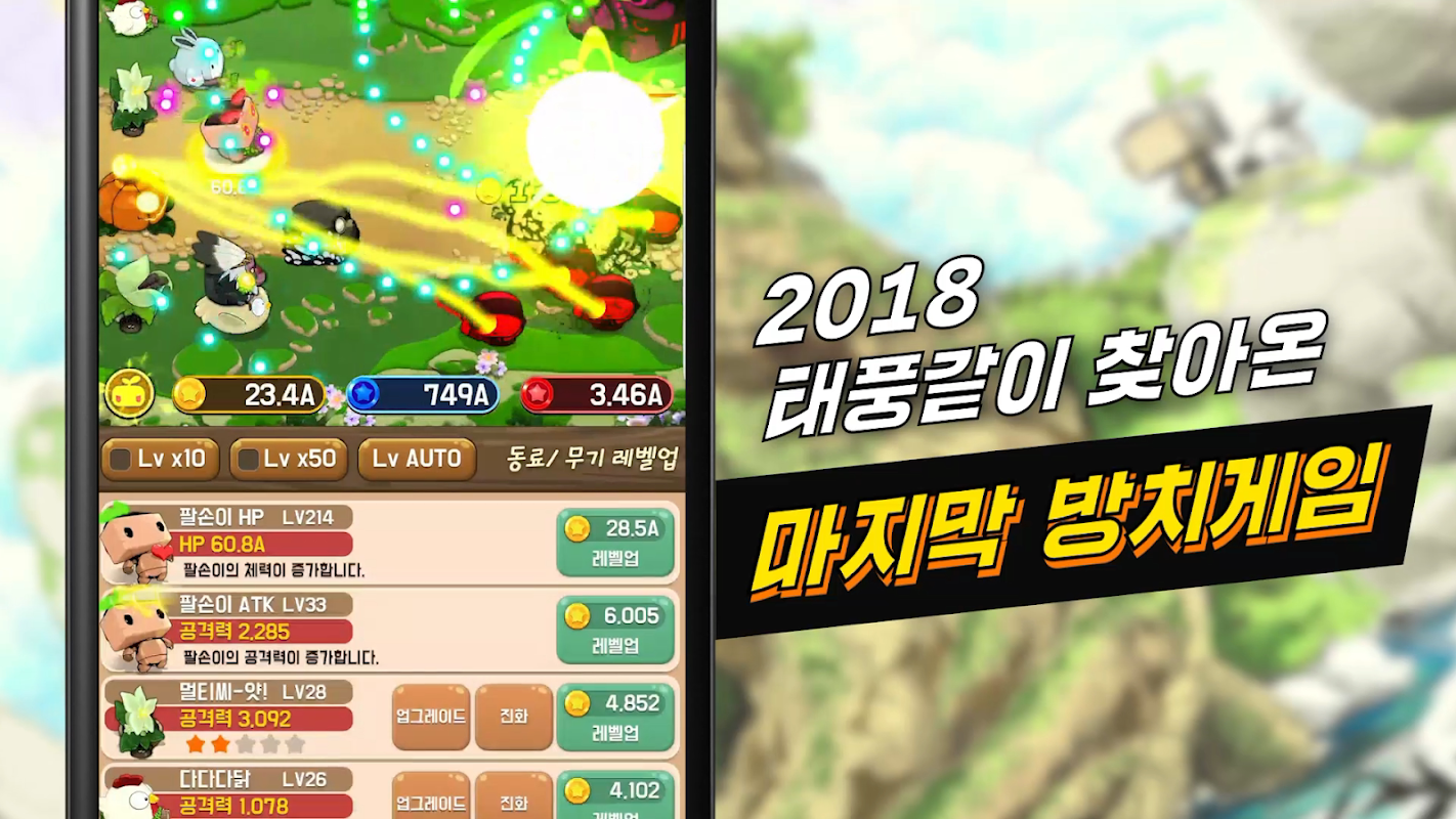 게임을 꺼두어도 유기농방위대는 스테이지를 등반하고 골드를 수집합니다!