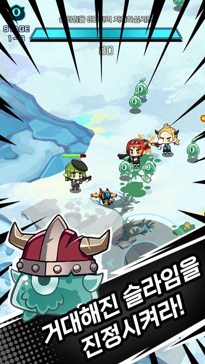 슈팅 로그라이크! 몰려드는 슬라임을 막아내 보세요! 외계에서 갑작스럽게 등장한 슬라임, 생각보다 귀여운 외형에 인기를 얻게되었지만 점점 커지는 슬라임의 덩치에 깔릴뻔한 사건들이 생기기 시작하면서 문제가 점점 커집니다! 슬라임들을 나눠서 슬라임과의 공존을 도와주세요!