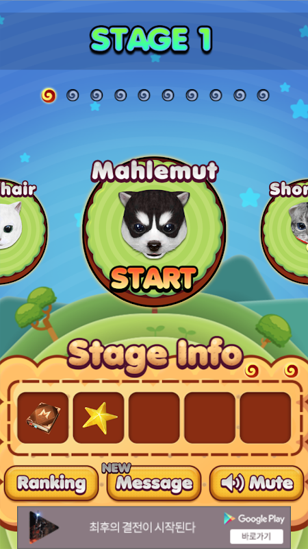 전체 10개의 스테이지로 구성되어있으며 10종의 펫과 10종의 경품이 있습니다.