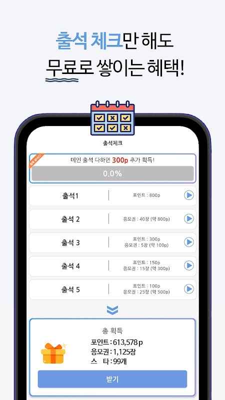 - 매일 출석만으로 포인트 적립! 모은 포인트로 매일 코인을 자동 구매하세요.