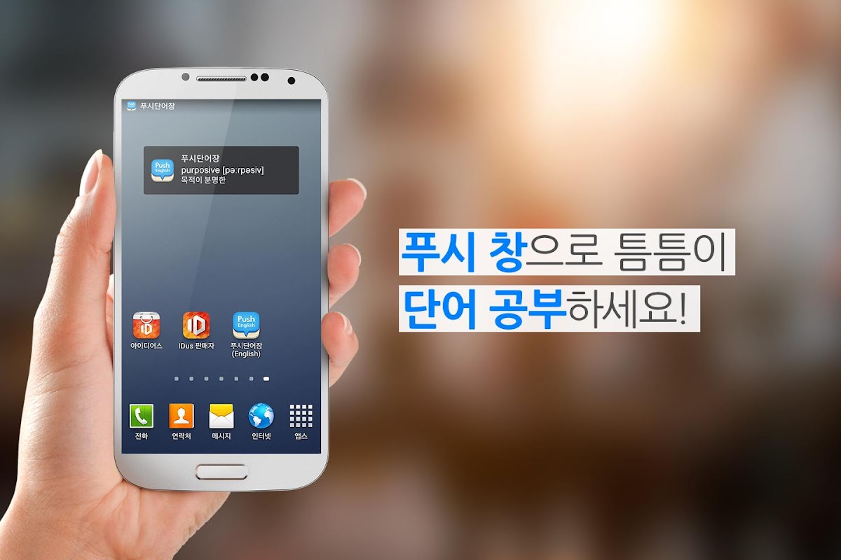 '푸시 단어장'은 단어, 뜻, 발음을 푸시로 보내주기 때문에 앱 실행 없이도 푸시창을 통해 틈틈이 단어를 암기할 수 있습니다.